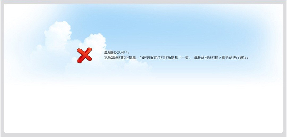 | 新增接入 | 網(wǎng)站負責人 | 現(xiàn)使用手機號與備案成功信息不符,需到原服務商變更網(wǎng)站負責人手機號,再進行轉入備案 |