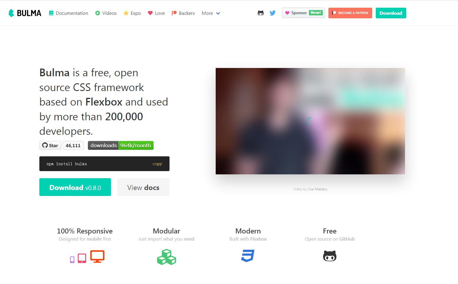 Bulma 是一個(gè)基于 Flexbox 布局技術(shù)的免費(fèi)、開(kāi)源的現(xiàn)代 CSS 框架,它提供了易于使用的前端的組件,您可以輕松地組合這些組件來(lái)構(gòu)建響應(yīng)式Web界面。