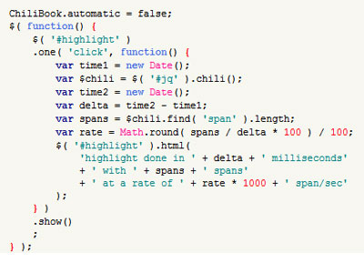 Chili是一個(gè)jQuery源代碼語(yǔ)法著色/高亮插件。具有以 下特性: 著色非???,易于使用,完全可定制,文檔豐富。 支持顯示行號(hào)。 在Internet Explorer、Firefox、Opera和Safari等瀏覽器上顯示同樣的效果。 默認(rèn)支持的源代碼類(lèi)型包括:C++、C#、CSS、Delphi、Java、JavaScript、LotusScript、MySQL、PHP和 XHTML。 完全支持正則表達(dá)式,包括反向引用。